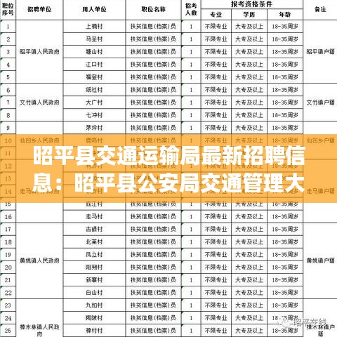 昭平县交通运输局是负责全县交通运输行业管理和监督的政府部门。近年来,随着昭平县经济的快速发展,交通运输事业也得到了长足的进步。为进一步加强交通运输队伍建设,提高服务水平和效率,现面向社会公开招聘一批优秀人才。
