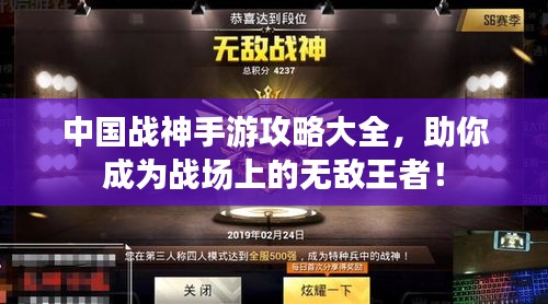 随着科技的进步和移动互联网的普及,手游已经成为人们休闲娱乐的重要方式之一,在众多手游中,中国战神以其独特的游戏设定和丰富的玩法吸引了大量玩家,本文将为大家带来中国战神手游的最新攻略,帮助大家在游戏中取得更好的成绩。