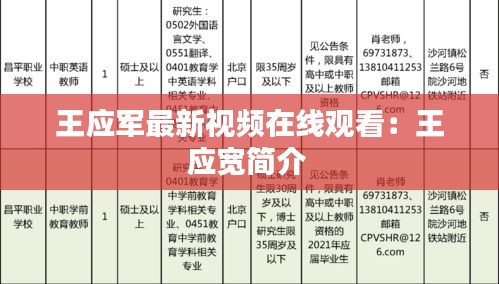想要观看王应军的最新视频,您可以通过以下几种方式进行: