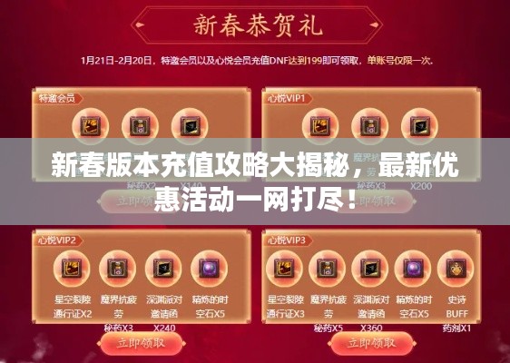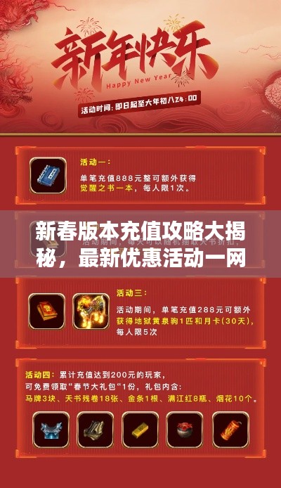 新春版本期间,众多游戏和应用都推出了丰富的充值活动与优惠,玩家可以通过关注游戏官方及第三方平台的公告,了解最新的充值优惠信息,在选择充值方式和金额时,要理性消费,关注个人信息安全,通过本文的攻略,希望能帮助大家在新春期间更好地享受游戏乐趣,实现充值收益最大化。