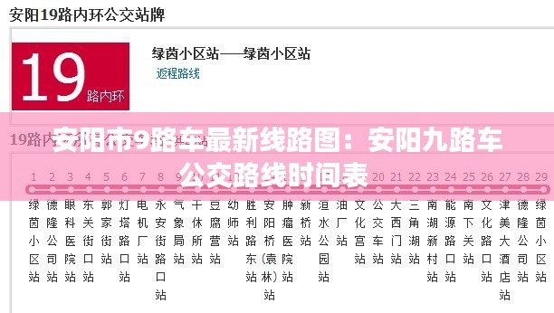 为了更好地服务市民,安阳市公共交通部门对9路车的线路图进行了最新更新。本次更新旨在优化线路布局,提高运营效率,同时确保乘客的出行安全。以下是9路车的最新线路图及相关信息。