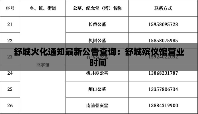 为了方便市民及时了解舒城火化服务的最新动态,舒城相关部门发布了最新的火化通知公告。以下是对这一公告的概览,帮助市民快速获取相关信息。
