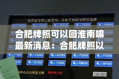 合肥牌照可以回淮南嘛最新消息:合肥牌照以后会升值吗