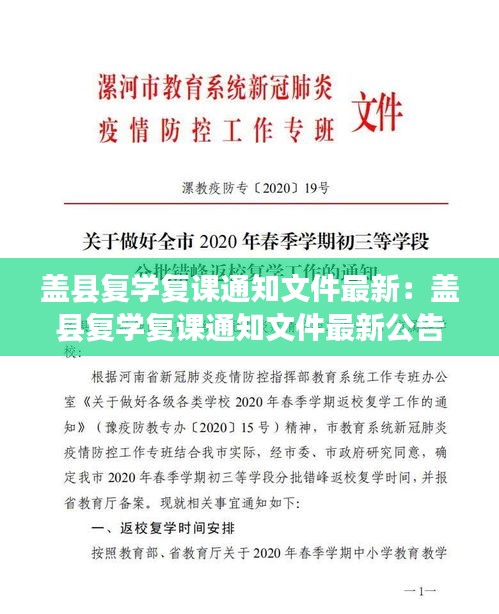 盖县复学复课工作是一项重要的民生工程,关系到广大师生的生命安全和身体健康。请各级各类学校、师生员工及家长高度重视,共同努力,确保复学复课工作顺利进行。