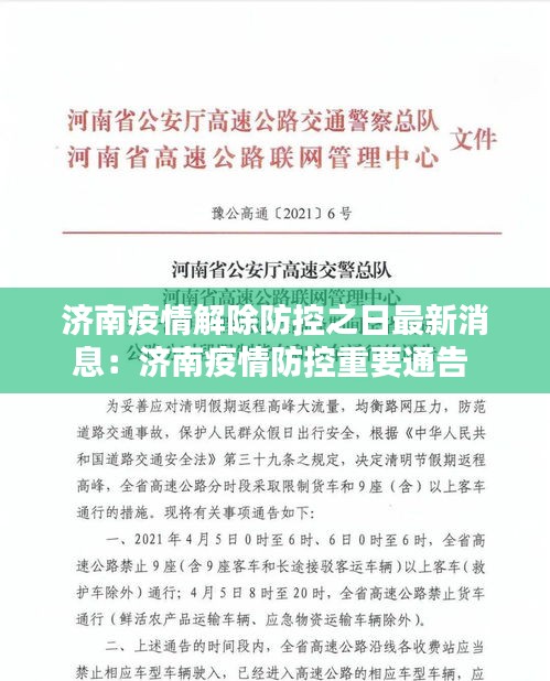 在经过严格的评估和准备后,济南市决定于近日正式解除疫情防控措施。具体措施包括: