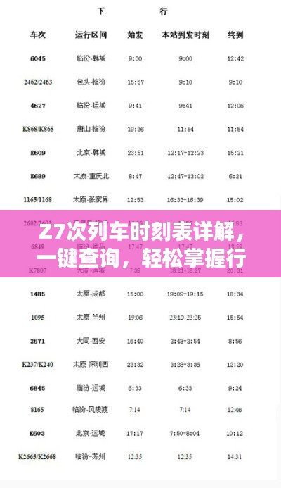 随着科技的快速发展,人们对出行的需求日益增长,乘坐火车已成为日常生活中不可或缺的一部分,对于经常乘坐火车出行的人来说,了解列车的时刻表至关重要,本文将为您详细介绍关于Z7次列车的时刻表,通过百度一下,让您轻松掌握行程安排。