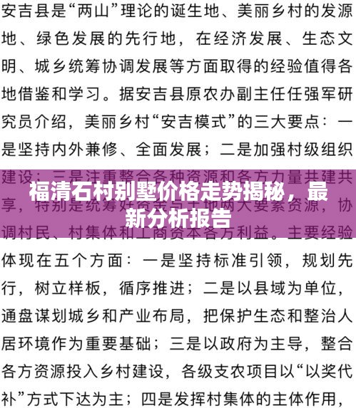 福清石村位于福建省福州市福清市境内,近年来凭借其独特的地理位置、优美的自然环境和丰富的资源优势,吸引了众多投资者和购房者关注,别墅作为高端住宅市场的重要组成部分,其价格走势一直备受关注,本文将对福清石村别墅价格走势进行最新分析,以飨广大关注者。