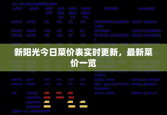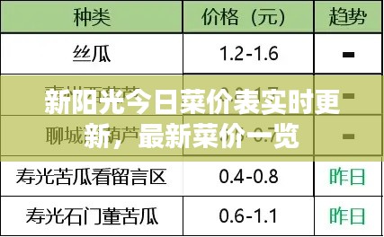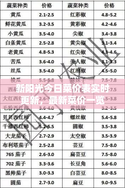 随着季节的变换和市场需求的变化,蔬菜价格也有所调整,为了给大家提供最新、最准确的蔬菜价格信息,新阳光今日菜价表发布了最新的菜价数据,本文将为大家详细介绍新阳光今日菜价表最新的内容。
