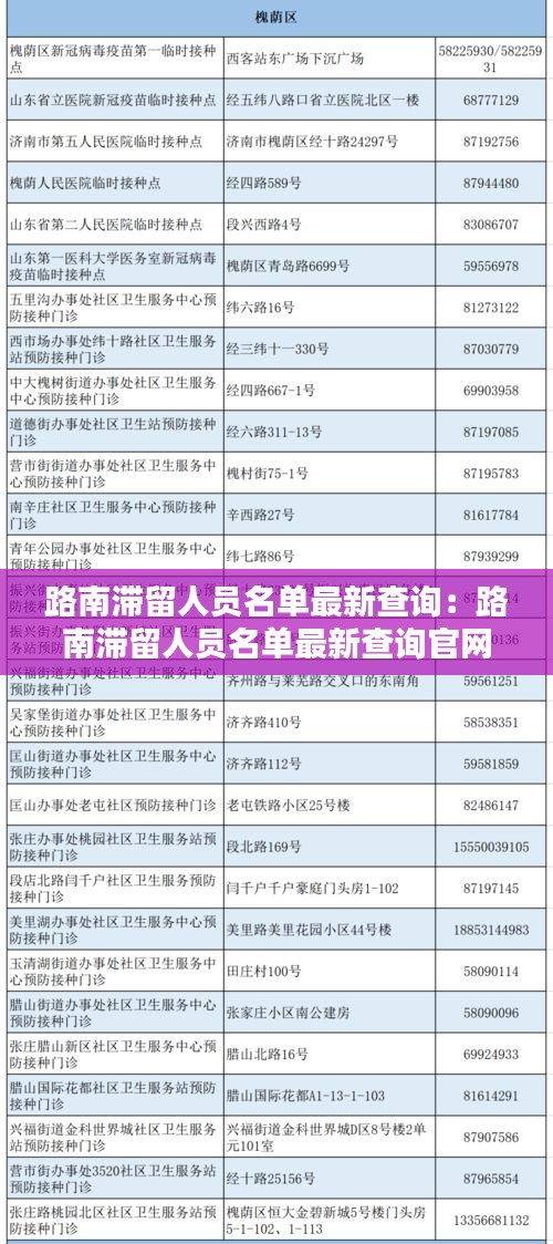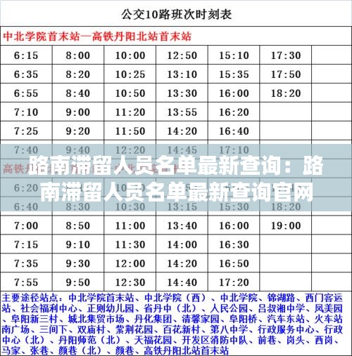 路南滞留人员名单的最新查询对于滞留者及其家人来说具有重要意义。通过本文提供的查询途径和注意事项,相信您能够及时了解相关信息,并为滞留人员提供必要的关爱和支持。