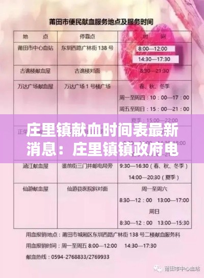 庄里镇献血时间表最新消息已经公布,希望广大居民踊跃参与,为我国公益事业贡献自己的一份力量。让我们共同期待在献血活动中,见证生命的力量,传递爱心与关怀。