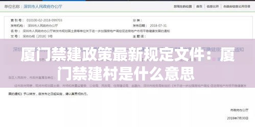 厦门市最新发布的禁建政策规定文件,旨在进一步规范城市建设,优化城市空间布局,保障人民群众的利益。相信在各级政府及相关部门的共同努力下,厦门市的禁建政策将会得到有效实施,为市民创造更加宜居的城市环境。