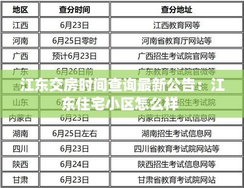 根据江东小区的开发进度和相关部门的审批情况,现将江东小区的交房时间公布如下,请大家及时关注并做好相关准备。