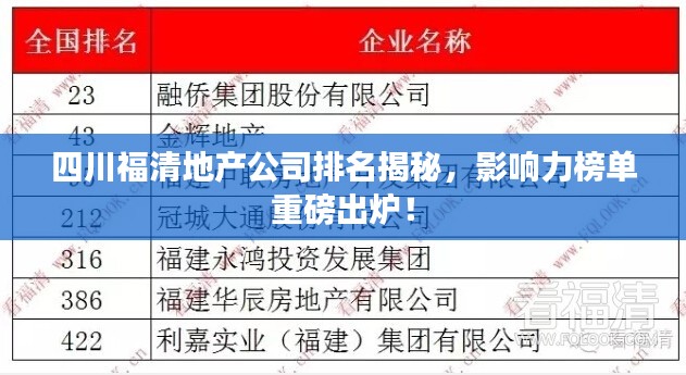 转载请注明来自马鞍山同杰良,本文标题:《四川福清地产公司排名揭秘,影响力榜单重磅出炉!》