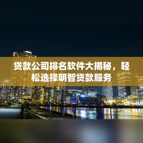 随着金融科技的飞速发展,贷款行业日益繁荣,市场上涌现出众多贷款公司,面对琳琅满目的贷款产品与服务,如何找到信誉良好、服务优质的贷款公司成为许多人的难题,这时,一款优秀的“贷款公司排名软件”便成为助力你明智选择贷款服务的重要工具。