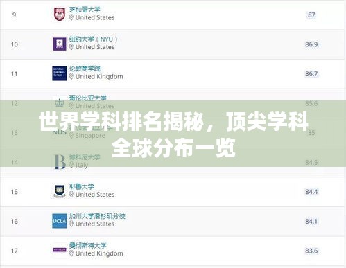 随着全球化的深入发展和教育国际化的趋势加强,了解全球学科排名成为了许多人关注的焦点,世界学科排名,不仅反映了各国在各个领域的研究实力,也揭示了全球教育的发展趋势,本文将探讨世界学科排名的背后含义,以及这些排名如何影响我们的教育和研究。