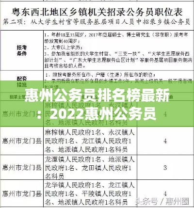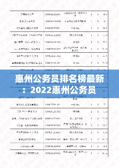 近日,惠州公务员排名榜最新数据已经公布,引起了社会各界的广泛关注。惠州作为广东省的一个重要城市,其公务员队伍的选拔和考核一直备受瞩目。以下是关于惠州公务员排名榜的最新情况。