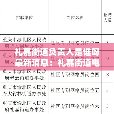 随着社会的发展和信息的透明化,公众对于政府部门负责人的关注日益增加。近日,关于礼嘉街道负责人的最新消息引起了广泛关注。本文将为您详细解析这一消息的背景和细节。