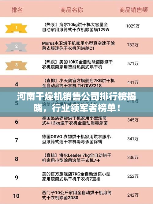 随着工业领域的快速发展,干燥机作为重要的设备之一,其市场需求日益增长,河南作为中国的工业大省,干燥机销售行业也日渐繁荣,本文将为您介绍河南干燥机销售公司的排名,以帮助您更好地了解该行业的现状。