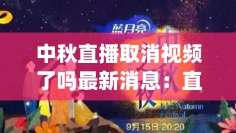 <p>随着中秋节的临近,许多平台纷纷推出了中秋直播活动,旨在为广大网友提供一场视觉盛宴。然而,近期有消息称部分中秋直播活动可能会取消,这引发了广大网友的关注。那么,中秋直播取消视频了吗?以下是最新消息的详细解读。</p>
