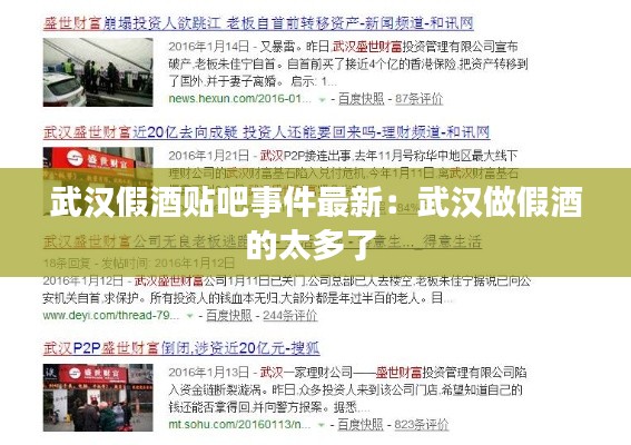 近日,武汉地区发生了一起假酒贴吧事件,引发了广泛关注。据悉,这起事件起始于一名网友在武汉某知名贴吧发帖,揭露了该市某酒类批发市场的假酒问题。帖子迅速引起了网友们的热议,纷纷加入讨论,揭露更多关于假酒的销售和使用情况。