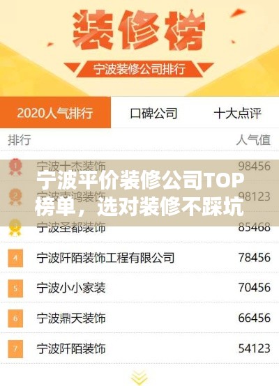 宁波作为浙江省的重要城市,近年来经济发展迅速,城市建设日新月异,装修行业也随之蓬勃发展,对于许多需要装修的业主来说,选择一家合适的装修公司至关重要,本文将为您介绍宁波的平价装修公司排名,帮助您更好地进行选择。