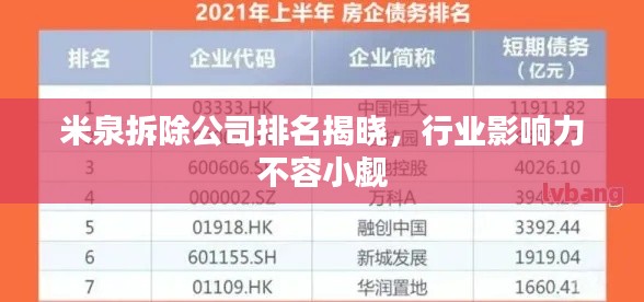 随着城市化进程的加速,拆除工程的需求日益增加,米泉地区作为城市发展的重要区域,拆除公司的数量和服务质量也在不断提升,本文将探讨米泉地区拆除公司的排名及其行业影响力,为广大需求者提供参考。