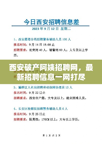 随着经济的不断发展和变化,各行各业的人才需求也在不断变化,西安破产阿姨招聘网发布了最新的招聘信息,引起了广泛关注,本文将从多个角度对这次招聘信息进行解析,帮助求职者更好地了解当前就业市场的情况。