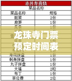 龙珠寺作为一处著名的旅游景点,吸引了众多游客前来参观,为了方便游客安排行程,本文将详细介绍龙珠寺门票预定时间表的最新信息,包括门票预定的方式、开放时间、预定渠道以及注意事项等。