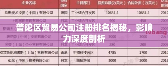 普陀区作为上海市的重要商贸区之一,拥有得天独厚的地理优势和政策优势,吸引了众多贸易公司在此注册经营,本文将探讨普陀区贸易公司的注册排名及其影响力,分析其在国内外市场的地位和发展趋势。