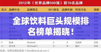 注:以上内容仅为示例性文本实际的全文内容需要根据具体的全球饮料公司规模排名情况来撰写并辅以相关的背景介绍、市场分析等内容以形成一篇具有深度和广度的文章。