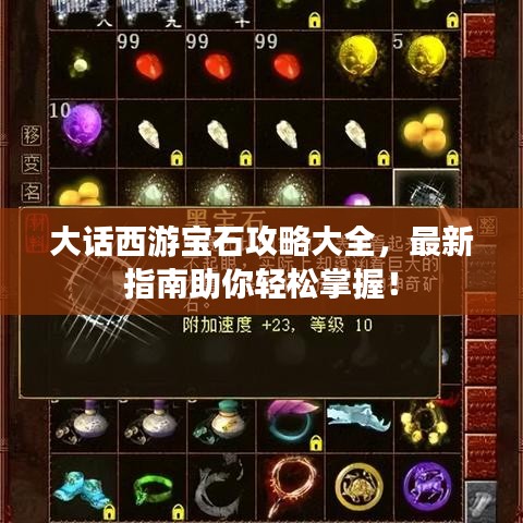 《大话西游》作为一款深受玩家喜爱的游戏,其宝石系统对于提升角色实力具有至关重要的作用,本文将为大家带来最新的宝石攻略,帮助大家更好地理解和利用宝石系统,提升游戏体验。