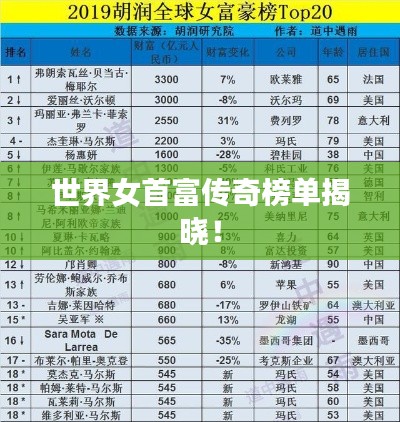 在商界的世界里,女性的身影逐渐崭露头角,她们凭借坚定的决心、独特的眼光和不懈的努力,创造了一个又一个的商业奇迹,我们将聚焦于一位特殊的女性——世界女首富,来探讨她的传奇排名及其背后的故事。