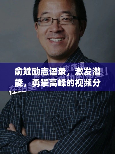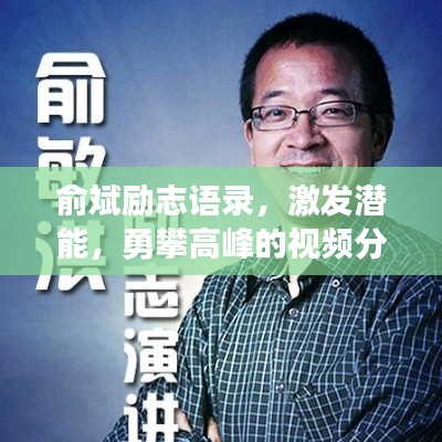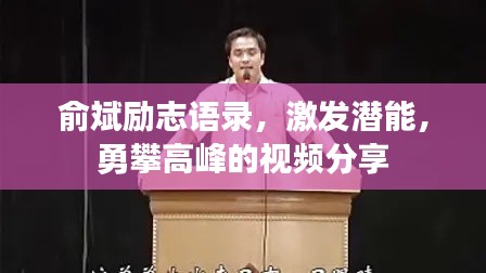 在这个充满挑战与机遇的时代,我们需要一种力量,一种激励我们不断前行的力量,而俞斌励志语录视频正是这样一种力量的源泉,通过分享俞斌先生的智慧与经验,这个视频鼓励我们勇敢面对困难,坚定信念,努力追求梦想。